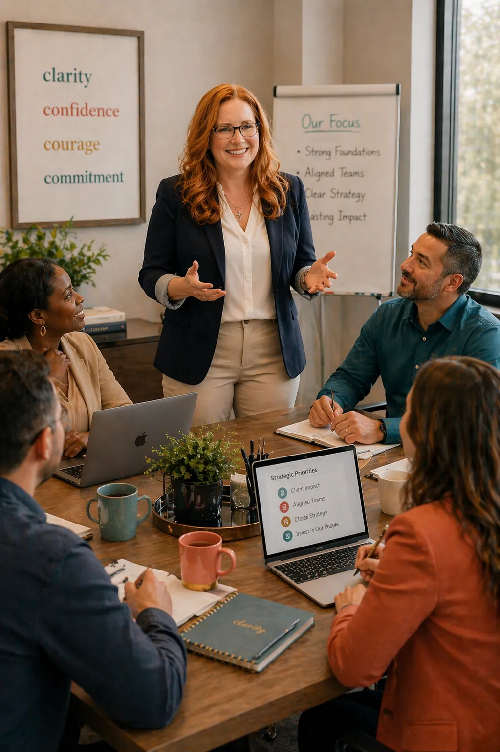 I work with your leadership team to strengthen the systems, structures, and culture that support sustainable growth without the chaos that usually comes with it.